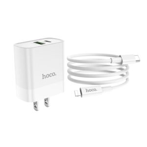 Bộ sạc Hoco C80 ( kèm cáp Type-C to Lightning ) củ sạc 2 cổng ( 1 USB A + Type-C ) PD 20W, Q.C 3.0, sạc nhanh 3A