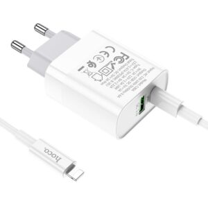 Bộ sạc nhanh PD 20W Hoco C80/C80A 2 cổng ( USB + Type-C ) sạc nhanh 3A ( kèm cáp Type-C to Lightning dài 1m )