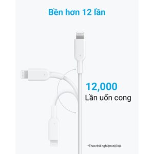 Bền hơn 12 lần so với cáp thông thường. Độ bền đã được phòng thí nghiệm Anker chứng minh với khả năng chịu được hơn 12.000 lần uốn cong.