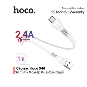 Cáp sạc nhanh và truyền dữ liệu Micro USB Hoco X40, sạc nhanh 2.4A MAX, dây sạc dẹt chống rối, chống đứt dài 100cm