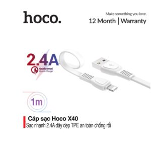 Cáp sạc nhanh và truyền dữ liệu Lightning Hoco X40, sạc nhanh 2.4A MAX, dây dẹt chống rối, chống đứt, dành cho iPhone