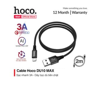 Cáp sạc nhanh và truyền dữ liệu lightning Hoco DU02 cho iPhone 12 pro max, sạc nhanh cáp bọc dù chống đứt, chống gãy gập