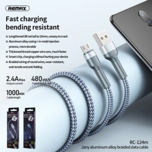 Cáp sạc nhanh cổng MicroUSB Remax RC-124m Data Jany Series thân bọc kim loại Max 2.4A có thiết kế hiện đại, bền bỉ, dài 1m, hỗ trợ sạc ổn định với nguồn ra chuẩn 2.4A (Max) là phiên bản cáp sạc chất lượng nhất mà bạn nên sở hữu.