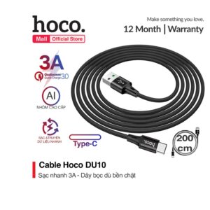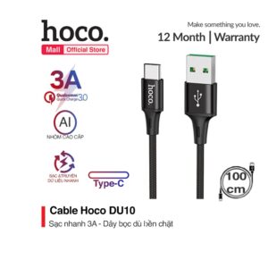 Cáp sạc nhanh và truyền dữ liệu Type-c Hoco DU10/ DU10 max, hỗ trợ sạc nhanh 3.0A, cáp bọc dù chống đứt, chống gãy gập