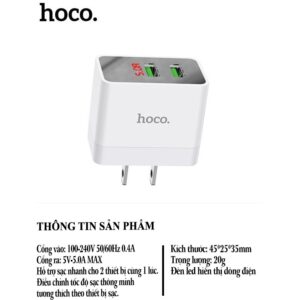 THÔNG SỐ KỸ THUẬT VỀ SẠC NHANH HOCO 2 USB-5A (DC28)