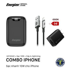 Combo sạc dự phòng Energizer 10,000mAh UE10042 – sạc Mophie 10W + cáp Mophie A to Lightning 1M