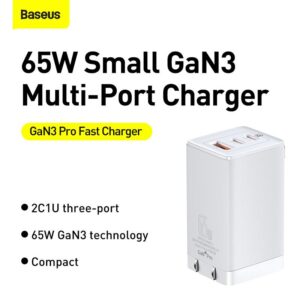 MÔ TẢ SẢN PHẨM Củ Sạc Baseus 65W GaN3/GaN5 Pro Fast Charger 3 cổng 2C+U Sạc nhanh trong 30p phù hợp cho 13