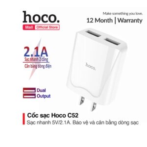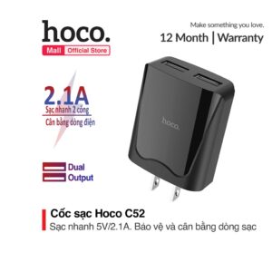 Củ sạc Hoco C52 sạc nhanh cổng kép USB 5V/2.1A cho Smart phone – Table