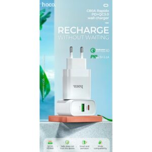 Cốc sạc Hoco C80A 2 cổng ( USB + Type- C ) PD 18W, sạc nhanh 3.1A, Q.C 3.0 ( EU )