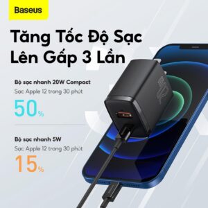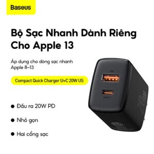 ➖ THÔNG TIN SẢN PHẨM: Củ sạc nhanh Baseus Compact Quick Charger 2 cổng U+C 20W