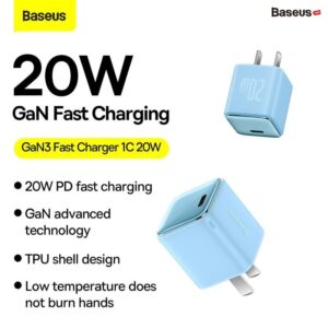 Củ Sạc Nhanh, Siêu Nhỏ Gọn Baseus GaN3 1C 20W cho iPhone/ iPad/ Samsung/ Xiaomi/ Huawei