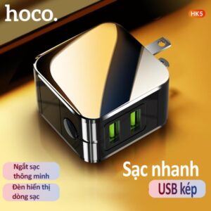 Củ sạc nhanh Hoco HK5 trang bị 2 cổng USB, sạc nhanh 2.4A, chip tự ngắt khi pin đầy hạn chế chai pin