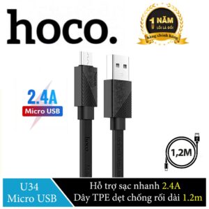 Cáp sạc Micro USB Hoco U34 sạc nhanh 2.4A dài 1.2M cho Smart Phone