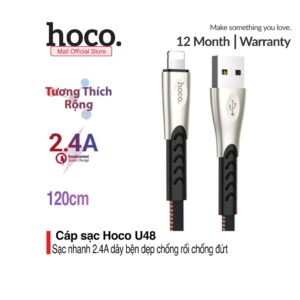 Cáp sạc nhanh Hoco U48 cho điện thoại dây dù chống đứt ( Hỗ trợ sạc nhanh 2.4A Max, dài 1.2m )
