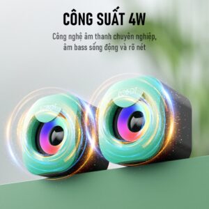 – Công suất đầu ra 4W. Âm thanh siêu trầm với đèn LED hiệu ứng RGL