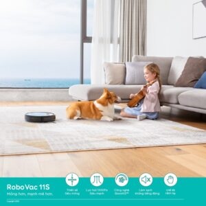 RoboVac 11S có thiết kế mới, chỉ mỏng 2,85 ”nhưng lực hút mạnh mẽ lên tới 1300Pa.