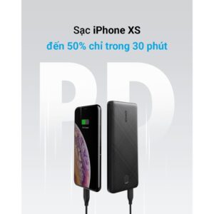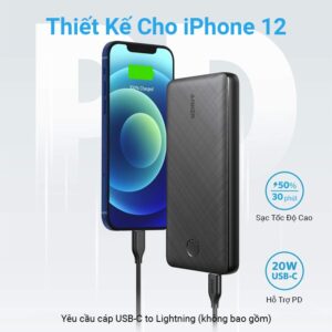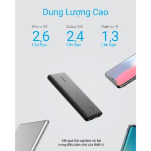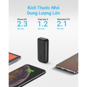 Dung lượng lớn 20.000mAh cung cấp 5 lần sạc cho iPhone 12, hơn 4 lần sạc đầy cho Samsung Galaxy S10 và hơn 2 lần sạc rưỡi cho iPad mini 5.