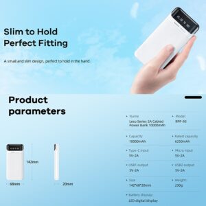 Đặc điểm nổi bật của Pin Dự Phòng Remax RPP-93 10000mAh 2 cổng USB max 2.0A tích hợp đèn LED và 3 cáp sạc cổng Type C, iPH, Micro USB