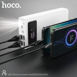 Pin sạc dự phòng 30000mAh Hoco J65 dung lượng lớn, 4 Output USB, tích hợp đèn pin chiếu sáng, màn hình LED hiện thị pin