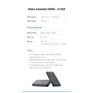 Pin có 2 phiên bản là Nhựa đen có vân sọc (có tên trên bao bì là PowerCore Essential) và Mặt vải Fabric (có tên trên bao bì là PowerCore Metro Essential). Quý khách hàng lưu ý lựa chọn đúng mẫu.