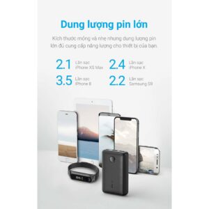 ✔ Pin ngoài của Anker PowerCore có dung lượng 10.000 mAh cung cấp khả năng sạc đồng thời cho hai thiết bị tương thích với dòng điện 2,4 A trên mỗi cổng. Mô hình hỗ trợ công nghệ tự động xác định chế độ sạc IQ phù hợp nhất cho một thiết bị cụ thể. Điều này đảm bảo bổ sung năng lượng nhanh chóng và an toàn cho tất cả các thiết bị di động của bạn.