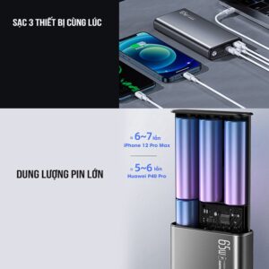 Pin dung lượng 19.000mAh, sạc 3 thiết bị cùng lúc