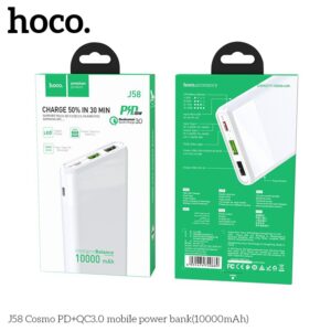 Pin sạc dự phòng Hoco J58 dung lượng 10000mAh, sạc nhanh 2A, PD 18W, Q,C 3.0, 3 cổng Output, đèn LED báo mức pin