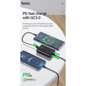 Pin sạc dự phòng Hoco Q3 Mini Size, 2 output ( USB + Type-C ), sạc nhanh PD20W/3A, có đèn LED