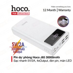 Pin sạc dự phòng 30000mAh Hoco J65 dung lượng lớn, 4 Output USB, tích hợp đèn pin chiếu sáng, màn hình LED hiện thị pin