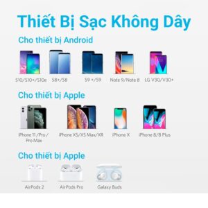 => Sạc không dây chỉ hỗ trợ cho các thiết bị có công nghệ sạc không dây chuẩn Qi hoặc có lắp thêm phụ kiện nhận sạc không dây chuẩn Qi