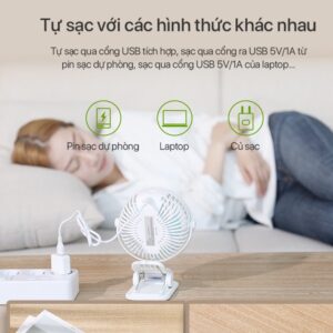 – Tự sạc với các hình thức khác nhau: sạc bằng củ sạc, sạc qua cổng USB 5V/1A từ pin sạc dự phòng, sạc qua cổng USB 5V/1A của laptop.