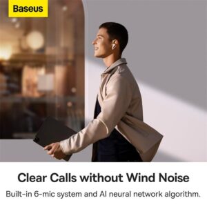 – Tai nghe được tích hợp 6 microphone giúp thu âm tốt hơn. Ngoài việc hỗ trợ xử lý chống ồn ANC , 6 microphone này cùng với thuật toán xử lý tích hợp AI từ Baseus giúp phân tích giọng nói của bạn và điều kiện môi trường giúp chất lượng cuộc đàm thoại cực nét , loại bỏ hoàn toàn tiếng gió, tiếng hú hay tiếng vang, nhiễu khi đàm thoại dù trong nhà hay ngoài trời.