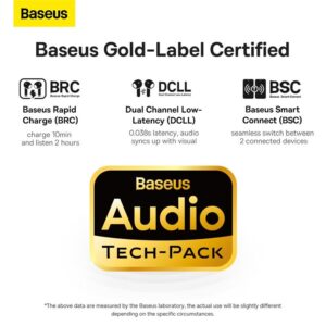 – Được trang bị chip BES25000YP tốc độ cao, sử dụng kết nối Bluetooth 5.2 low energy cho kết nối ổn định và tiết kiệm điện. Baseus Smart Connect (BSC) cho phép chuyển đổi dễ dàng giữa 2 thiết bị đã kết nối .