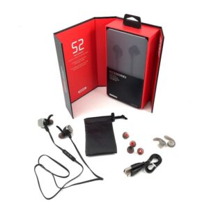 RB-S2 Sport là mẫu tai nghe không dây Bluetooth có đường kính loa siêu nhỏ, cho phép người dùng có thể nhét thoải mái vào trong tai mà không bị đau hay cấn. Bên ngoài của loa có thiết kế khá vuông vắn, được phủ lên trên một lớp sơn bạc và phay xước dạng kim loại, giúp cho chiếc tai nghe trở nên vô cùng bóng bẩy và đậm chất thể thao. Cùng với phần gài, bạn sẽ không còn phải lo chiếc tai nghe sẽ bị rớt ra ngoài trong quá trình sử dụng. Ngoài ra, RB-S2 sử dụng loại dây chống rối, bạn sẽ không còn phải gỡ rối dây mỗi khi cần sử dụng tai nghe, làm tăng sự trải nghiệm của người dùng tốt hơn.