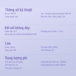 Tai nghe true wireless Remax TWS-19 màu sắc cá tính