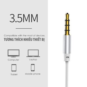 • REMAX RM–512 jack cắm 3.5mm tương thích với hầu hết các thiết bị điện tử phổ biến hiện nay. Sở hữu nó bạn sẽ không phải bận tâm việc bị hạn chế thiết bị sử dụng.