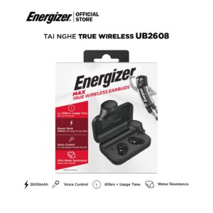 Tai nghe True Wireless Energizer UB2608 – kèm hộp sạc di động 2600mAh, chống thấm nước IPX4 – Hàng Chính Hãng